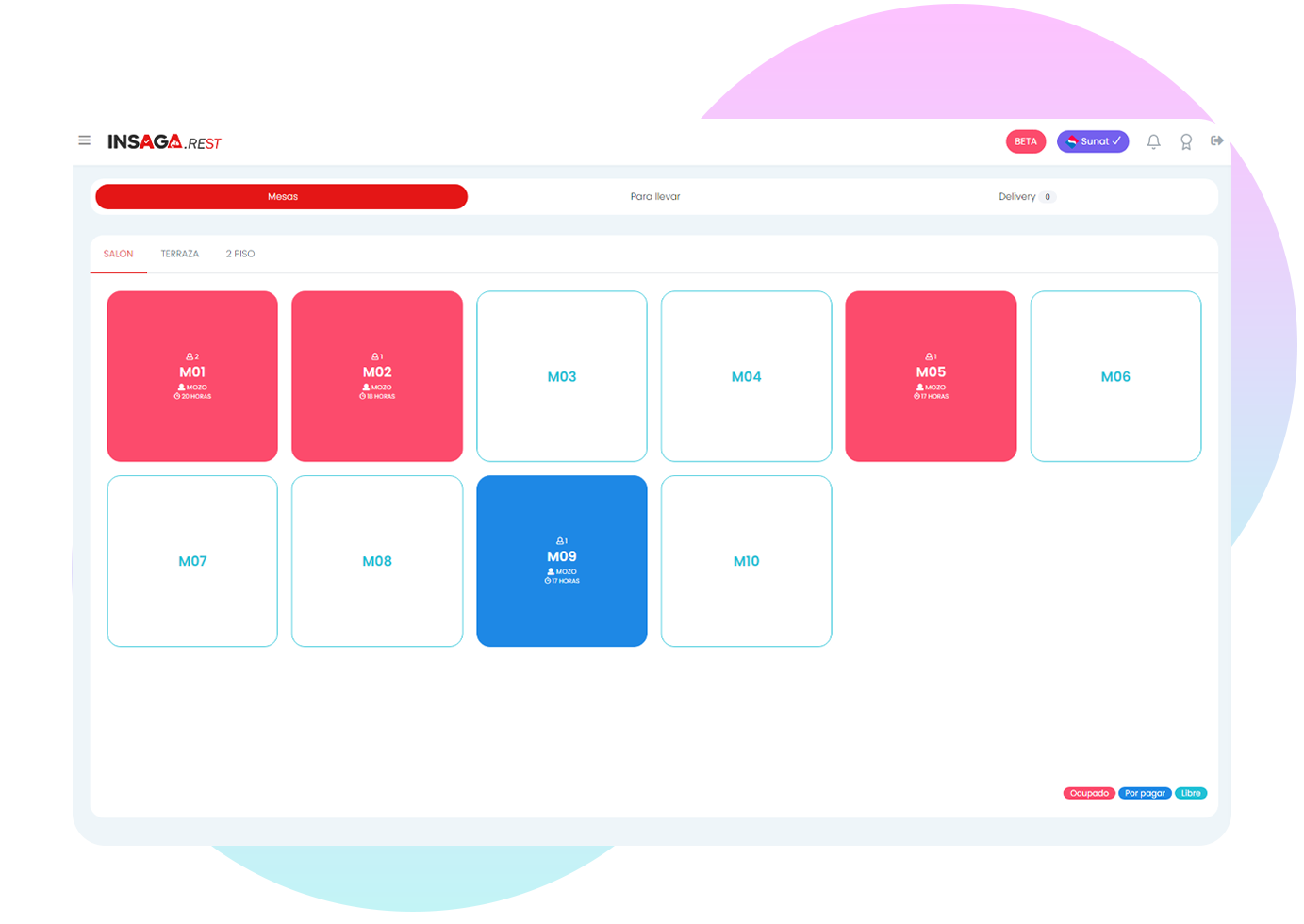 - Mesa libre, ocupado o pendiente.