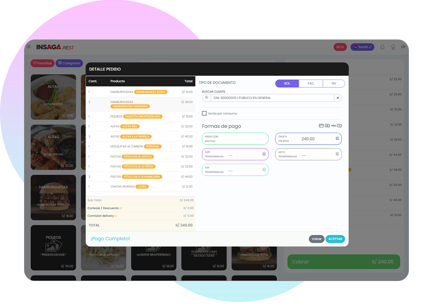 Control de mesas, para llevar y delivery